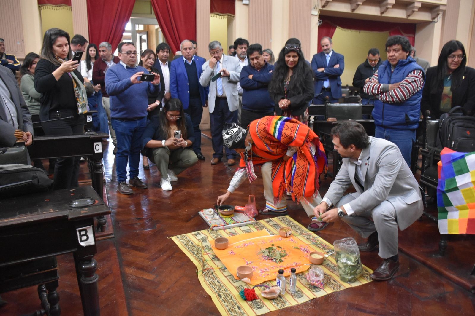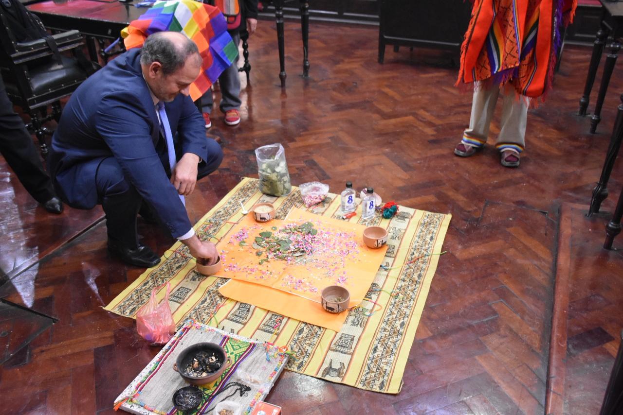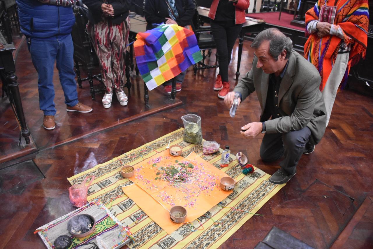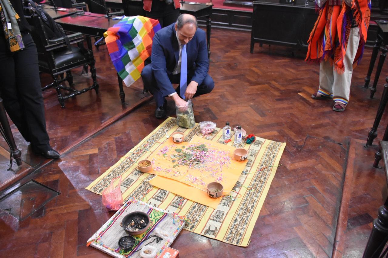 Previo a la sesión se realizó en el recinto la tradicional celebración a la Pachamama, organizada por el senador Walter Cruz y a cargo del Consejo Kolla de Isla de Cañas. Contó con la participación del Presidente del Senado, Senadores y personal de la Cámara.