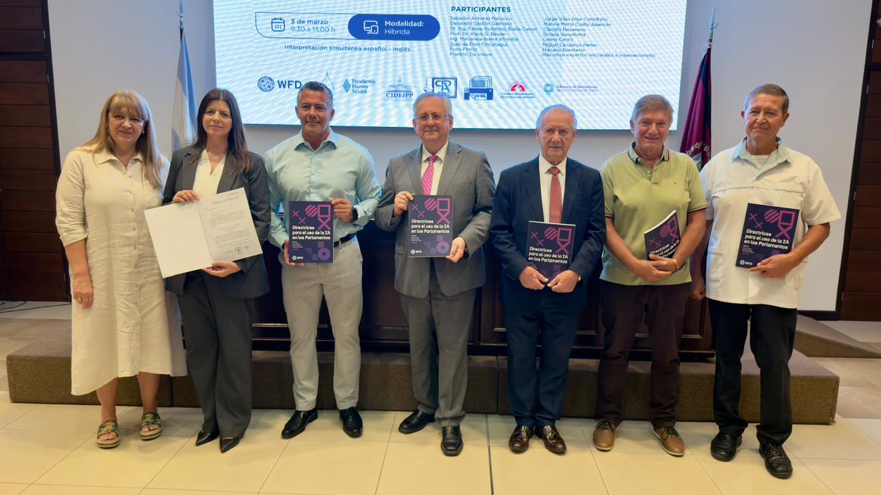 El programa incluyó el primer segmento “IA, Gobierno y Sociedad”, a cargo de Celina Cantú y Jorge Vilas Díaz Colodrero (Universidad Austral), con moderación de la diputada provincial Marianela Ibarra Afranllie. Luego se realizó el lanzamiento de las “Directrices para el Uso de IA en Parlamentos”, con exposiciones de Juan de Dios Cincunegui y Fotis Fitsilis (CIDEIPP), y aportes de especialistas nacionales e internacionales, entre ellos Franklin De Vrieze (Westminster Foundation for Democracy), representantes parlamentarios de Chile y España, y referentes legislativos y tecnológicos de Argentina y la región. La jornada finalizó con un espacio de preguntas, respuestas y conclusiones.