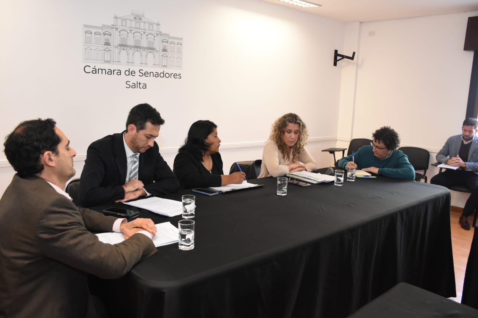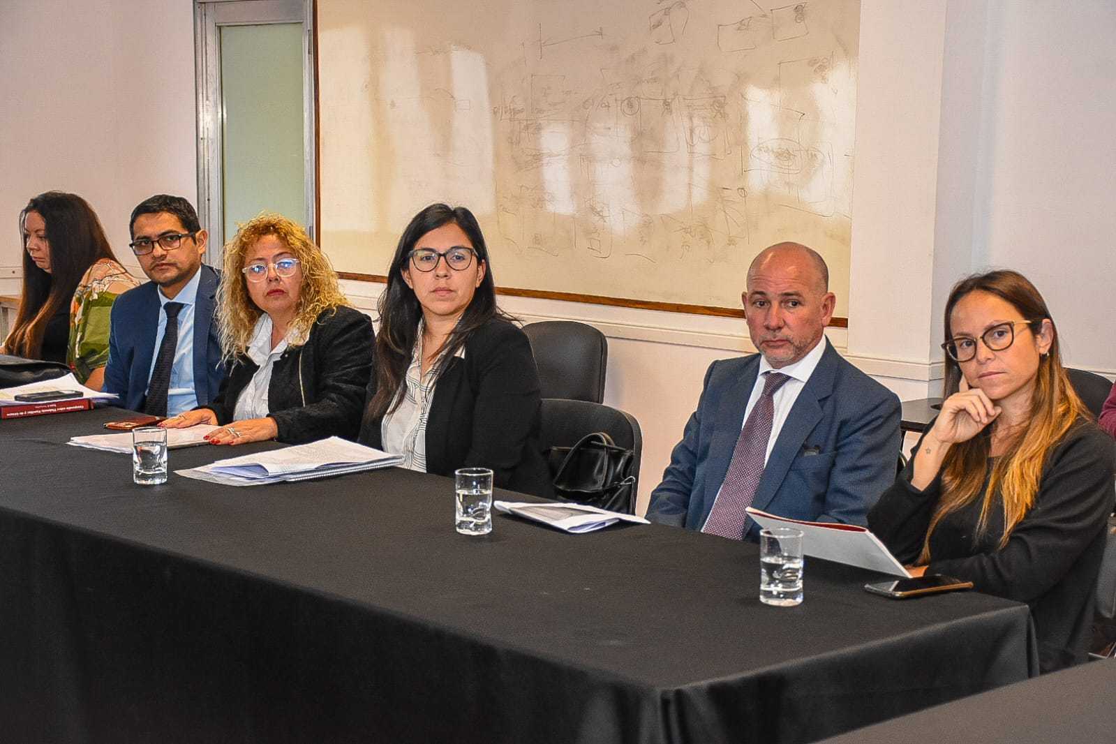 a Comisión Especial de Mujer, Género y Diversidad del cuerpo, Sonia Magno, junto a los senadores, Carlos Rosso; Manuel Pailler; Carlos Ampuero; Dani Nolasco; Esteban D’Andrea; Juan Cruz Curá; Javier Mónico; Jorge Soto y Marcelo García. Por el MPF asistieron las fiscales de Violencia Familiar y de Género, María Lujan Sodero y Elisa Pérez; el fiscal penal de Delitos contra la Integridad Sexual, Pablo Rivero; el secretario relator de la Procuración, Aldo Saravia; la titular de la Oficina de Coordinación y Antecedentes de Violencia de Género, Ana Salas; el auxiliar fiscal de Violencia de Género, Marcos Vega; la secretaria letrada, Victoria Martínez y el defensor general, Damián Cornejo.